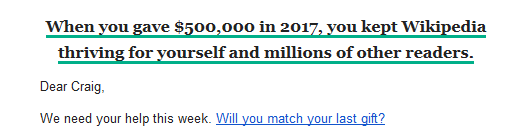 The joke’s on Craig, though — Jimmy Wales is just going to email him next year pleading with puppy eyes to repeat his generous donation: